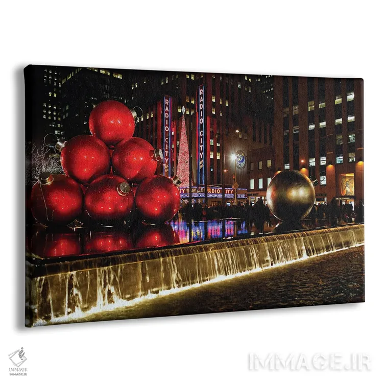 تابلو دکوراتیو نمای شبانه سالن موسیقی رادیو سیتی با تزئینات کریسمس، نیویورک اثر جورج اوزه - نمای پرسپکتیو محصول