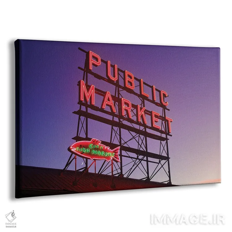 تابلوهای نئونی بازار پایک پلیس در سپیده دم، سیاتل اثر جورج اوزه - نمای پرسپکتیو محصول