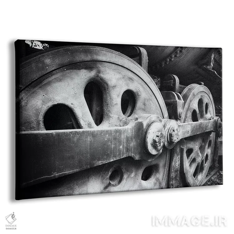 تابلو دکوراتیو نمای نزدیک از چرخ های لوکوموتیو فولادی اثر جورج اوزه