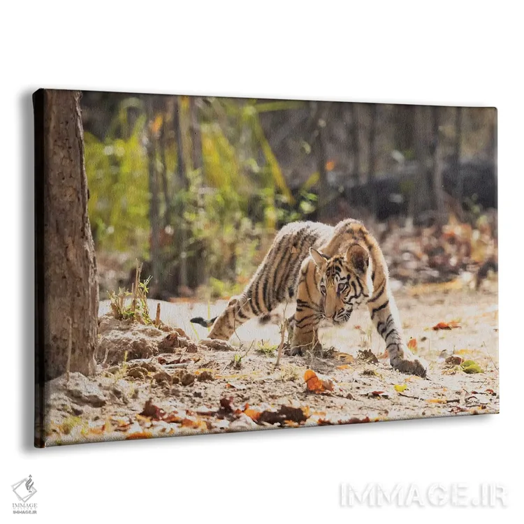تابلو هند، مادیا پرادش، پارک ملی بندهاوگار. توله ببر بنگال با دقت به دنبال شکار چیزی است اثر الن گاف - نمای پرسپکتیو محصول