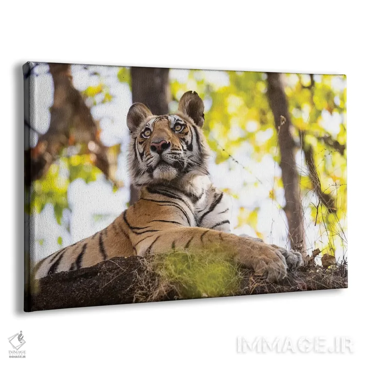 تابلو هند، مادیا پرادش، پارک ملی بندهاوگار. ببر بنگال جوان از فراز تخته‌سنگی بلند نظاره می‌کند اثر الن گاف - نمای پرسپکتیو محصول