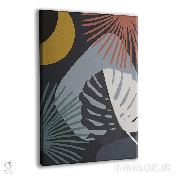 تابلو ین و یانگ مینیمال با برگ مانسترا و نخل به سبک شب با ظرافت I اثر هنر آنیتا و بلا