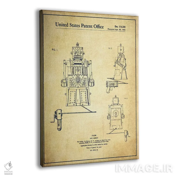 تابلو نقشهٔ پتنت ربات اسباب‌بازی قدیمی اثر پیکسل کهنه (استودیو/نام هنری) - نمای پرسپکتیو محصول