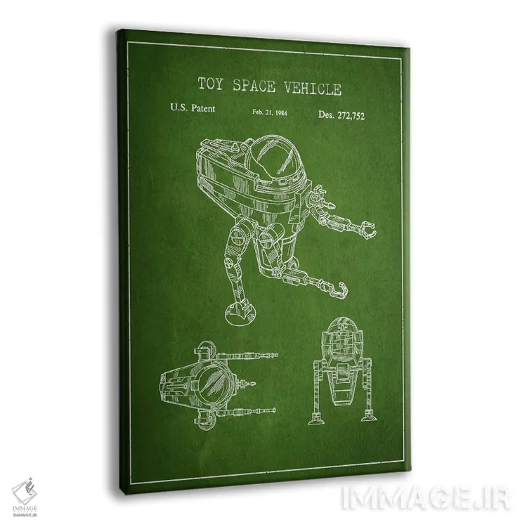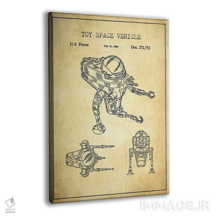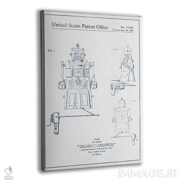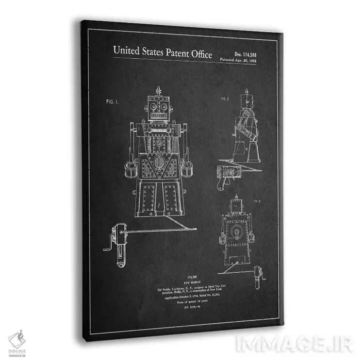 تابلو طرح ثبت اختراع ربات اسباب‌بازی (تیره) اثر پیکسل کهنه (استودیو/نام هنری) - نمای پرسپکتیو محصول
