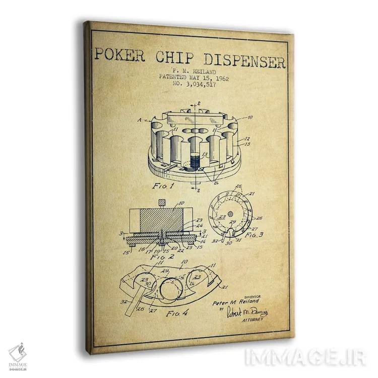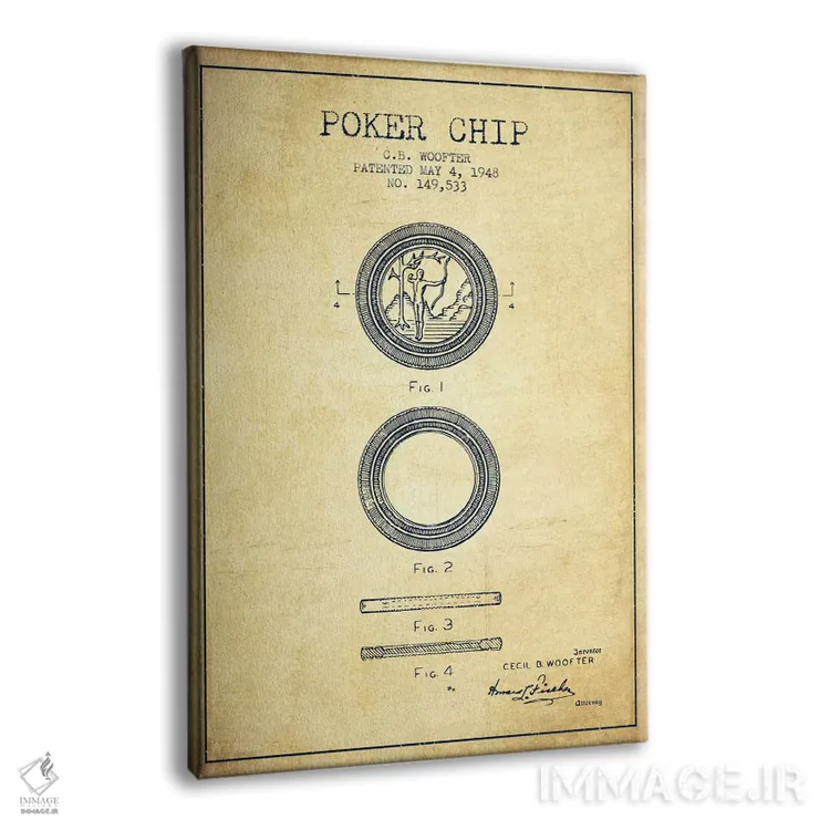 تابلو نقشهٔ ثبت اختراع ژتون پوکر ۳ (طرح قدیمی) اثر پیکسل کهنه (استودیو/نام هنری)
