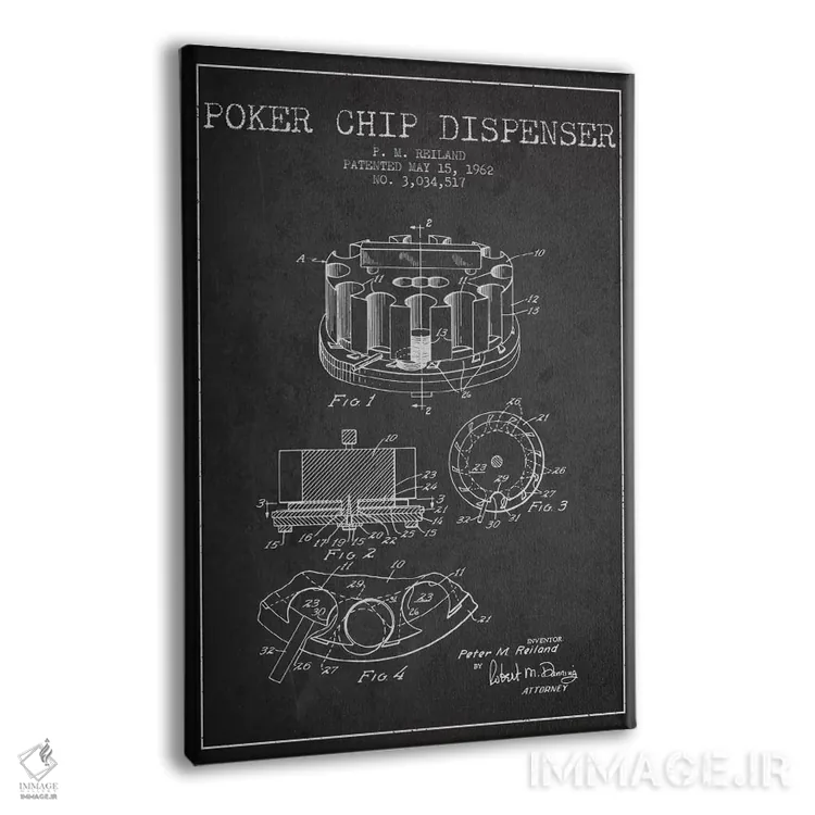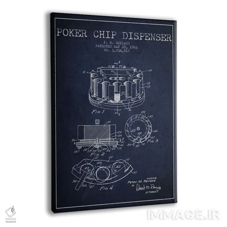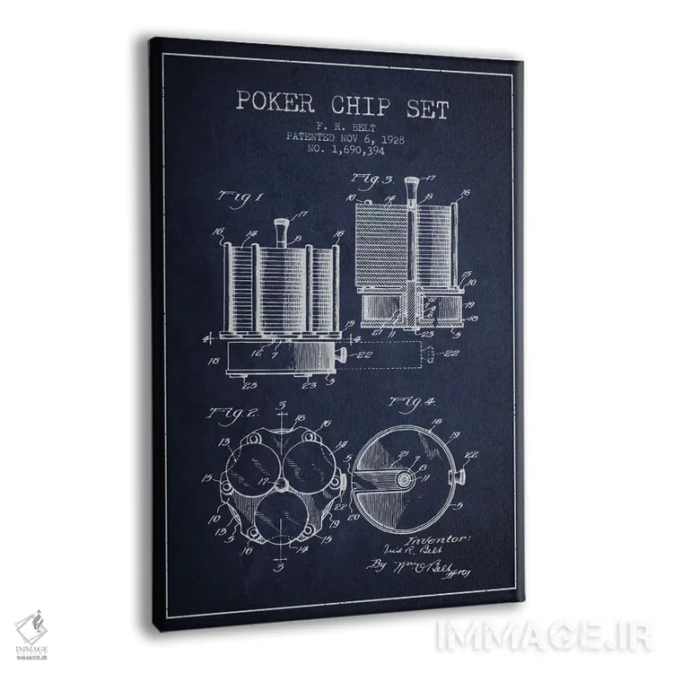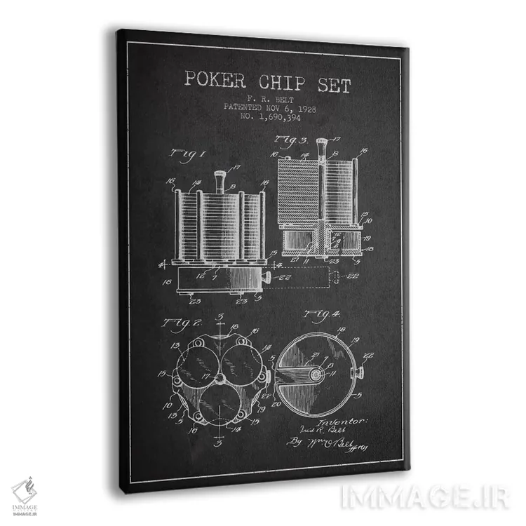 تابلو نقشهٔ ثبت اختراع ژتون‌های پوکر ۱ (زغالی) اثر پیکسل کهنه (استودیو/نام هنری) - نمای پرسپکتیو محصول
