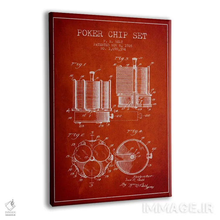 تابلو نقشهٔ ثبت اختراع ژتون‌های پوکر ۱ (قرمز) اثر پیکسل کهنه (استودیو/نام هنری) - نمای پرسپکتیو محصول
