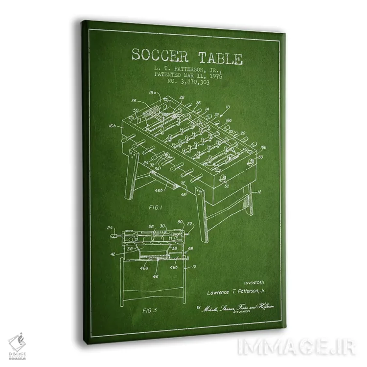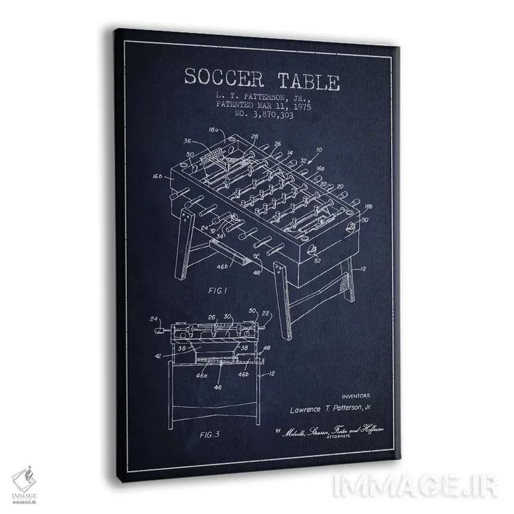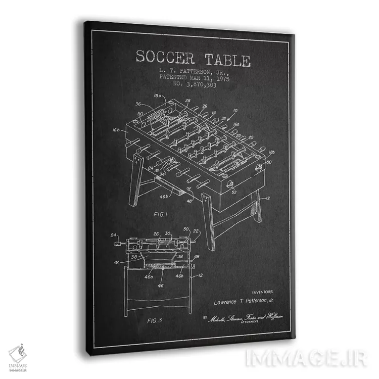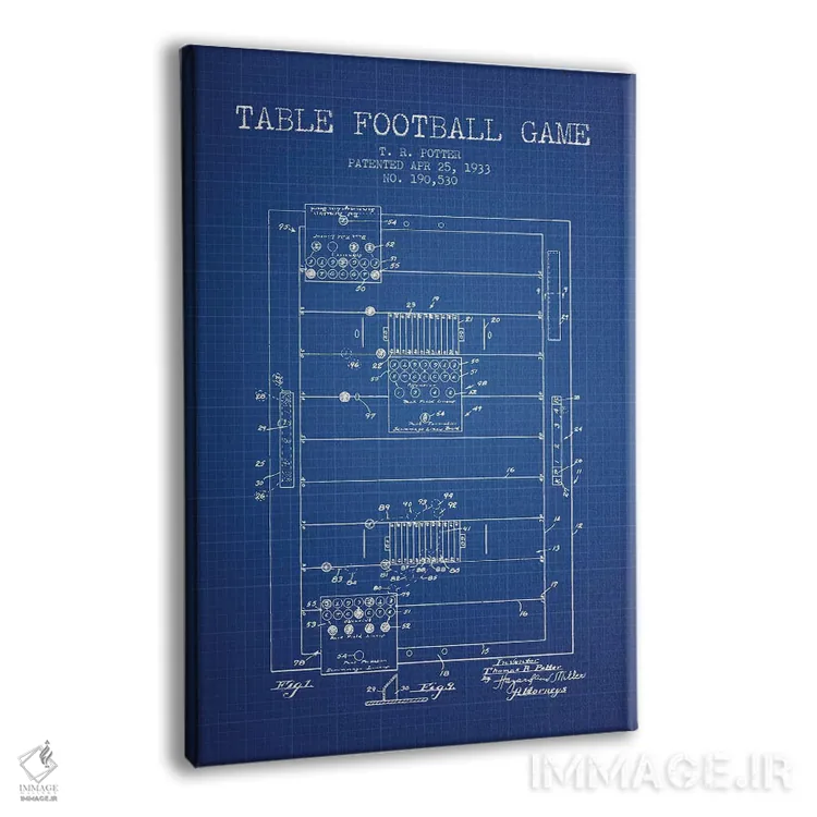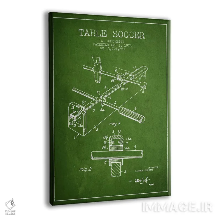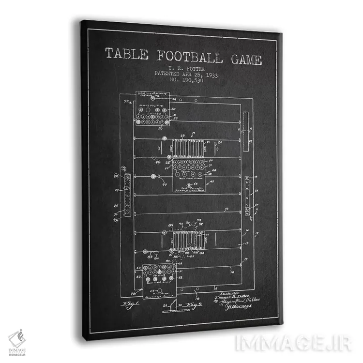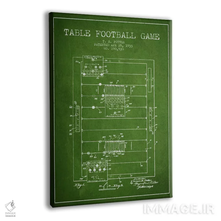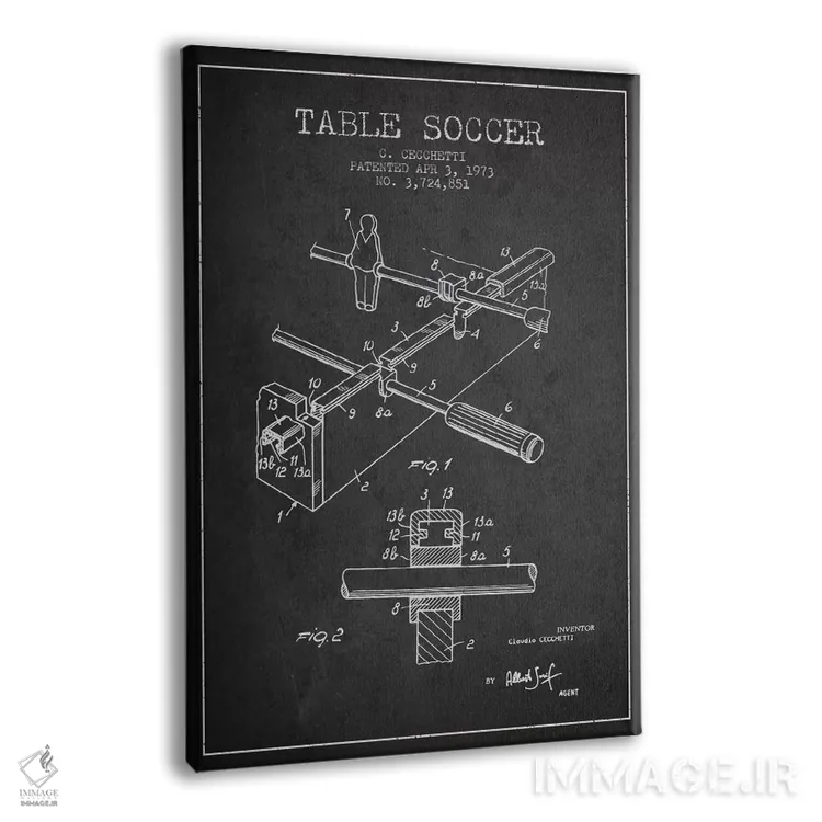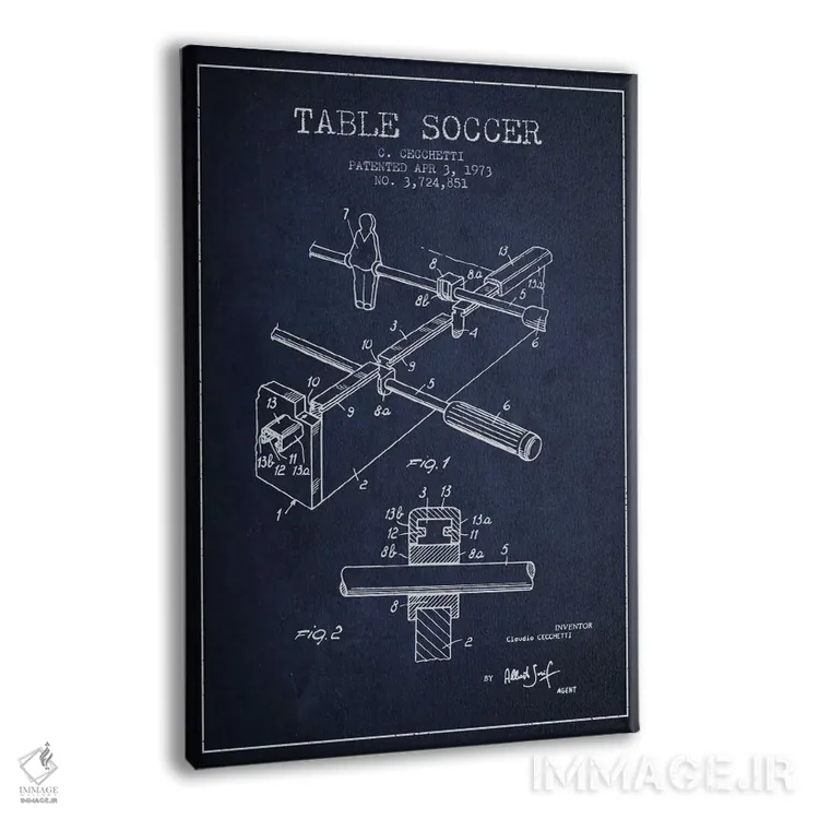 تابلو نقشهٔ ثبت اختراع فوتبال رومیزی ۲ (طرح کلاسیک) اثر پیکسل کهنه (استودیو/نام هنری) - نمای پرسپکتیو محصول