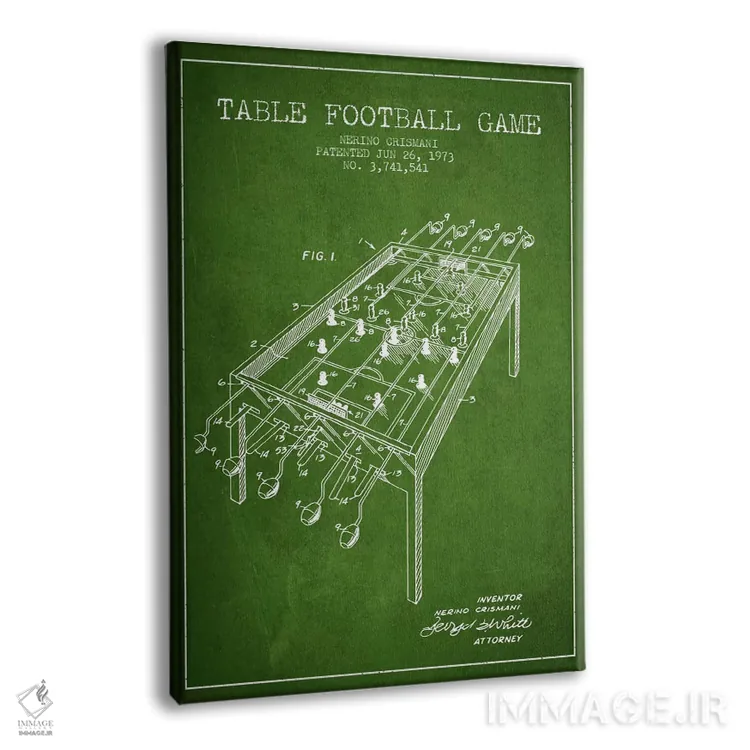 تابلو نقشهٔ ثبت اختراع فوتبال رومیزی ۲ سبز اثر پیکسل کهنه (استودیو/نام هنری)