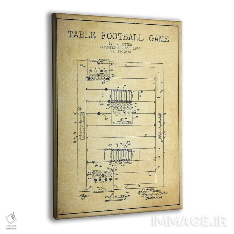 تابلو نقشهٔ ثبت اختراع فوتبال رومیزی ۲ (طرح کلاسیک) اثر پیکسل کهنه (استودیو/نام هنری)