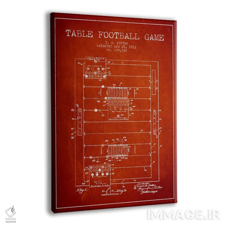 تابلو نقشهٔ ثبت اختراع فوتبال رومیزی ۲ قرمز اثر پیکسل کهنه (استودیو/نام هنری) - نمای پرسپکتیو محصول