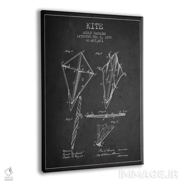 تابلو نقشهٔ ثبت اختراع بادبادک (طرح تیره) اثر پیکسل کهنه (استودیو/نام هنری) - نمای پرسپکتیو محصول