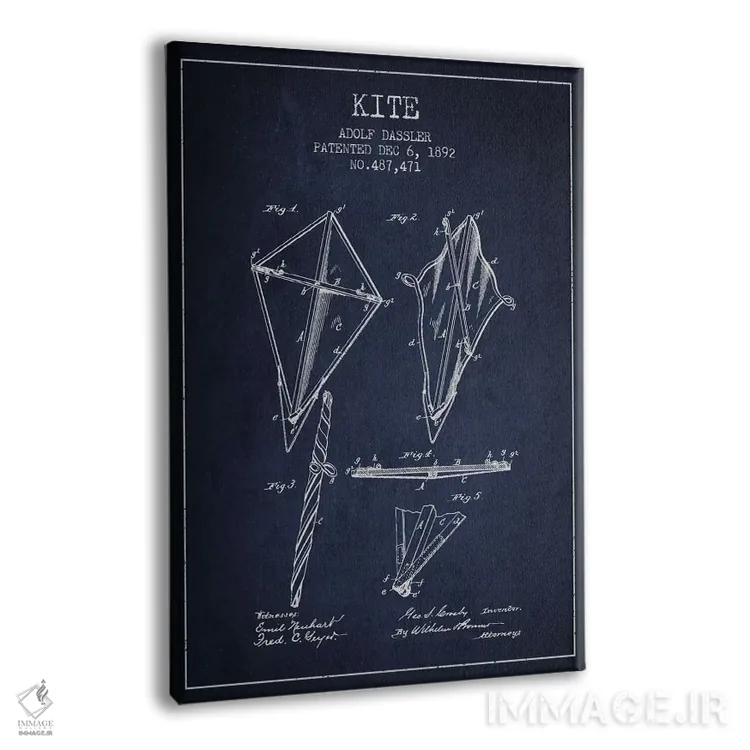 تابلو نقشهٔ ثبت اختراع بادبادک (طرح سرمه‌ای) اثر پیکسل کهنه (استودیو/نام هنری) - نمای پرسپکتیو محصول