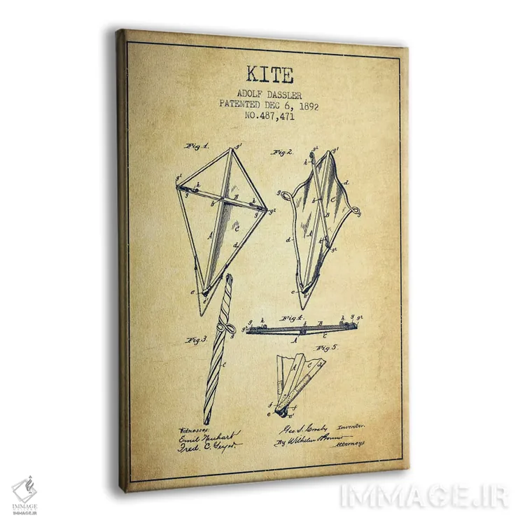 تابلو نقشهٔ ثبت اختراع بادبادک (طرح وینتیج) اثر پیکسل کهنه (استودیو/نام هنری) - نمای پرسپکتیو محصول