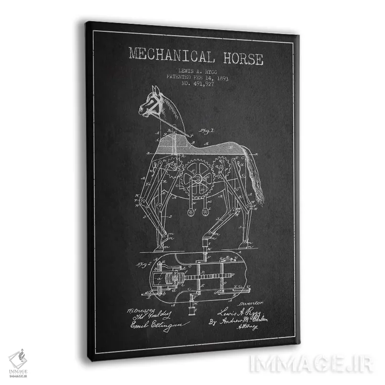 تابلو نقشهٔ اختراع اسب مکانیکی (تیره) اثر پیکسل کهنه (استودیو/نام هنری)