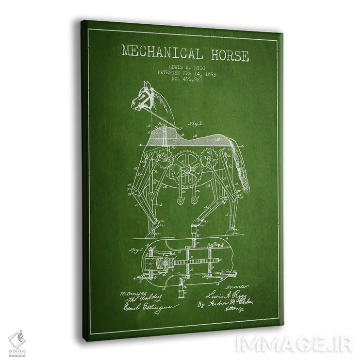 تابلو نقشهٔ اختراع اسب مکانیکی (سبز) اثر پیکسل کهنه (استودیو/نام هنری)