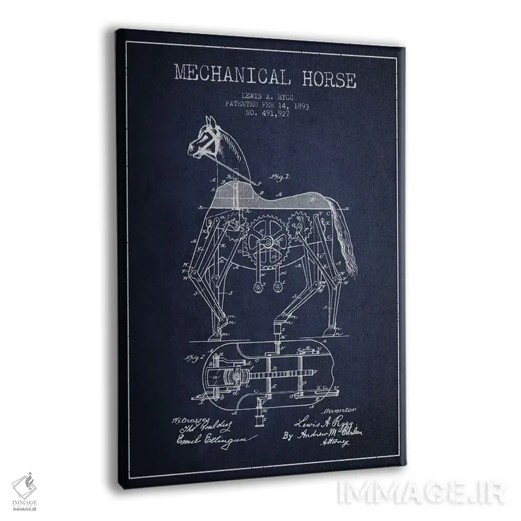 تابلو نقشهٔ اختراع اسب مکانیکی (قدیمی) اثر پیکسل کهنه (استودیو/نام هنری) - نمای پرسپکتیو محصول