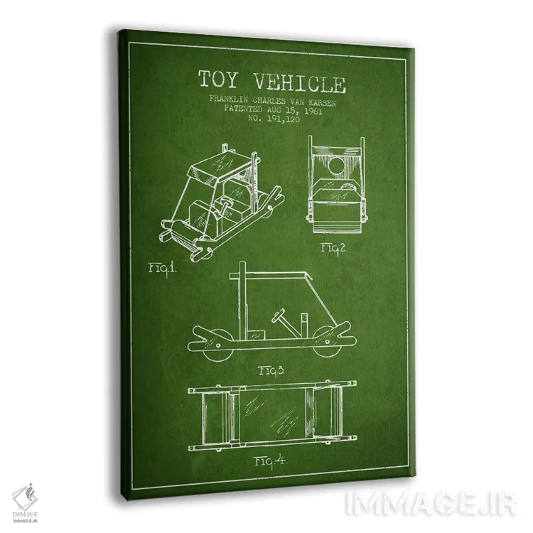 تابلو نقشهٔ اختراع اسب مکانیکی (سبز) اثر پیکسل کهنه (استودیو/نام هنری) - نمای پرسپکتیو محصول