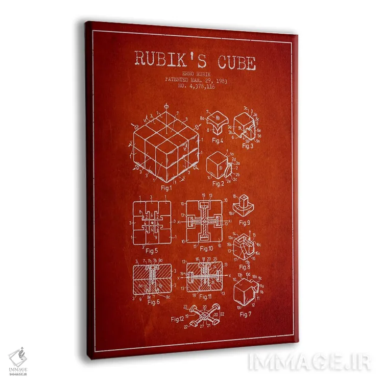 تابلو طرح ثبت اختراع روبیک (قرمز) اثر پیکسل کهنه (استودیو/نام هنری) - نمای پرسپکتیو محصول