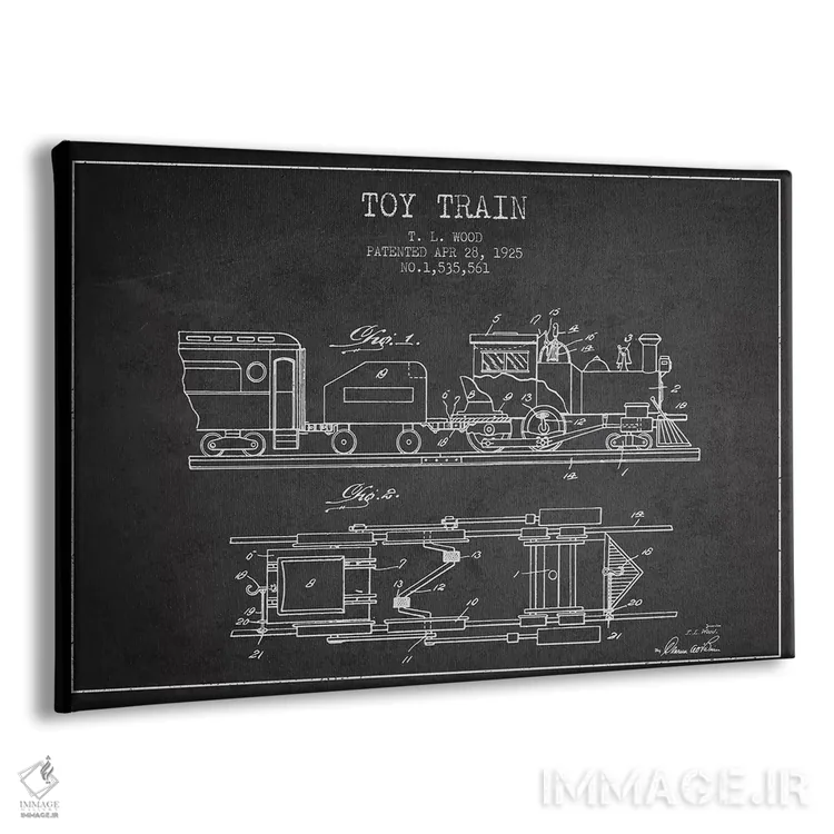تابلو طرح پتنت قطار اسباب‌بازی تی.ال. وود (زغال‌سنگی) اثر پیکسل کهنه (استودیو/نام هنری) - نمای پرسپکتیو محصول