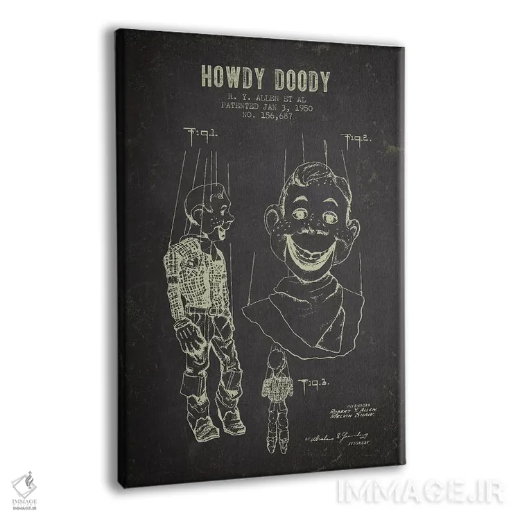 تابلو طرح پتنت عروسک هودی دودی آر.وای. آلن و همکاران (زغال‌سنگی) اثر پیکسل کهنه (استودیو/نام هنری) - نمای پرسپکتیو محصول