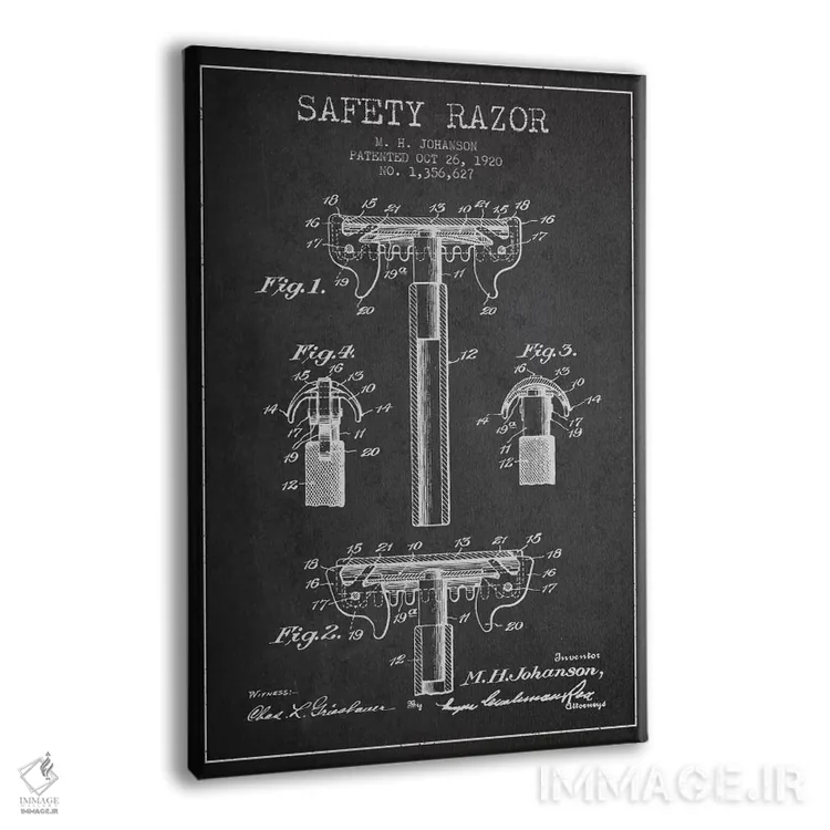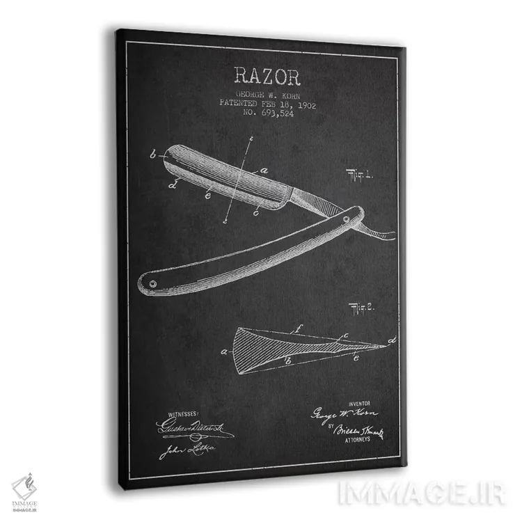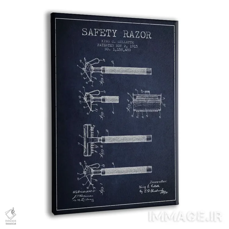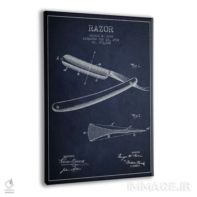 تابلو نقشهٔ ثبت اختراع تیغ اصلاح (زغالی) اثر پیکسل کهنه (استودیو/نام هنری) - نمای پرسپکتیو محصول