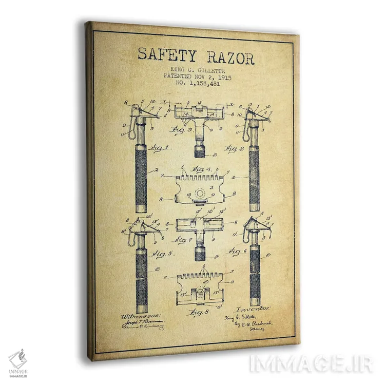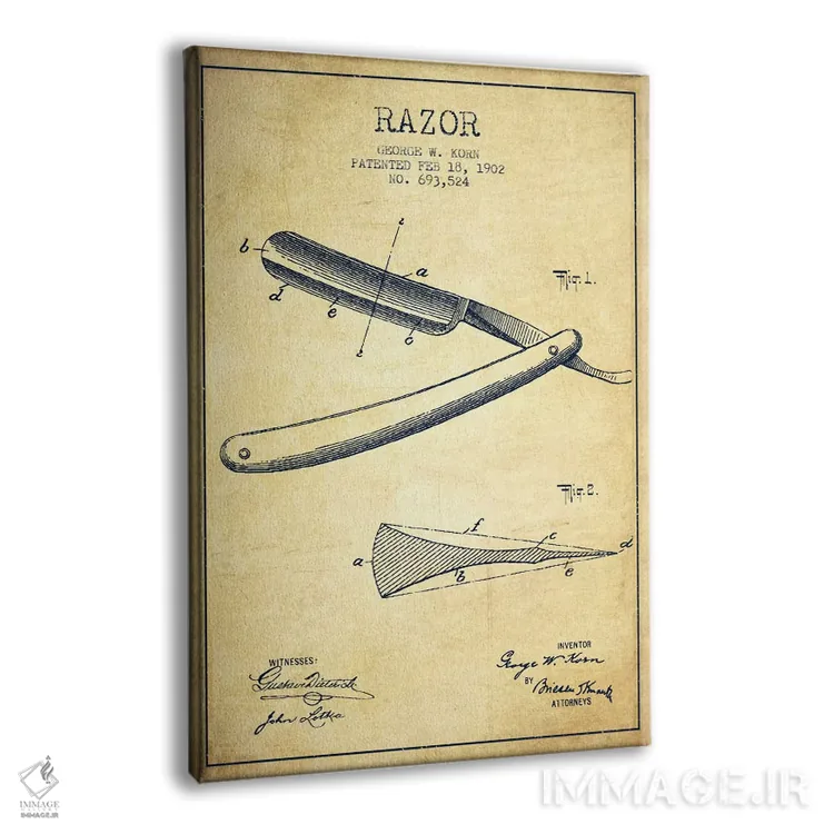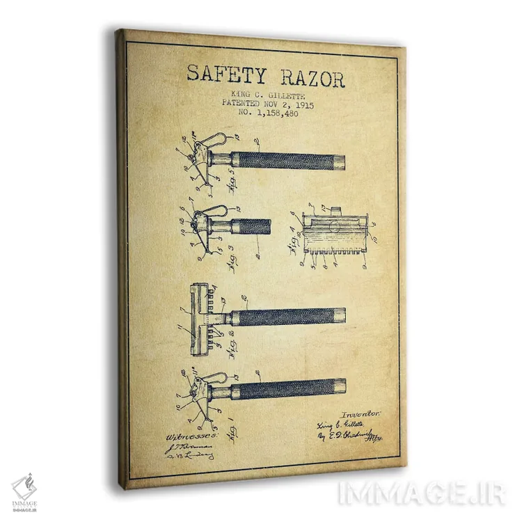 تابلو نقشهٔ ثبت اختراع قدیمی تیغ اصلاح اثر پیکسل کهنه (استودیو/نام هنری)