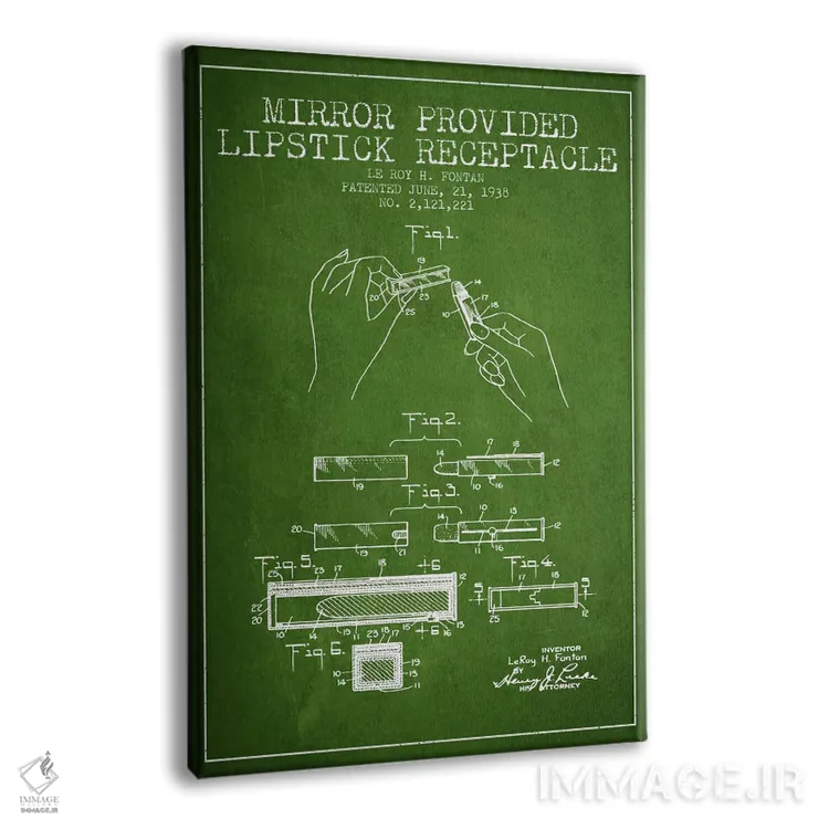 تابلو نقشهٔ ثبت اختراع رژ لب با آینه سبز اثر پیکسل کهنه (استودیو/نام هنری)
