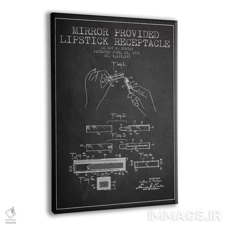 تابلو نقشه ثبت اختراع رژ لب همراه با آینه (ذغالی) اثر پیکسل کهنه (استودیو/نام هنری)