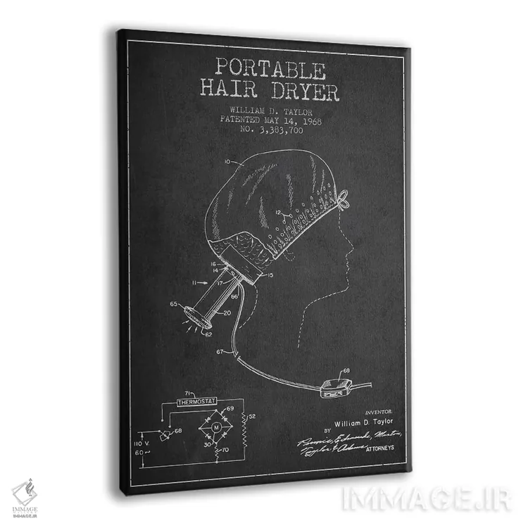تابلو نقشهٔ ثبت اختراع سشوار قابل حمل (زغالی) اثر پیکسل کهنه (استودیو/نام هنری)