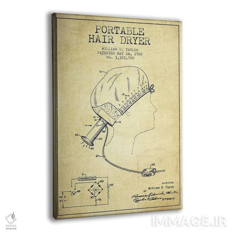 تابلو طرح حق ثبت اختراع صدای سشوار (وینتیج) اثر پیکسل کهنه (استودیو/نام هنری)