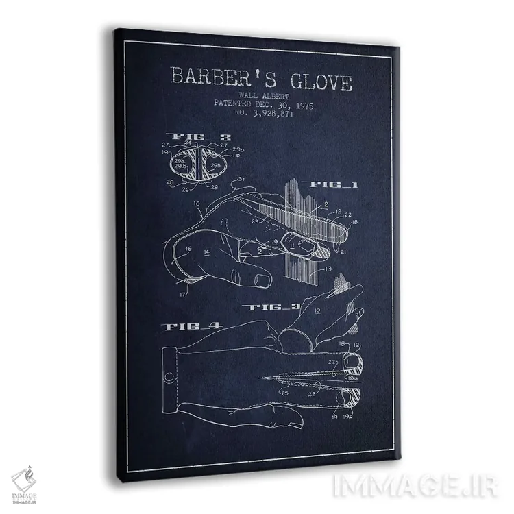 تابلو نقشه پتنت دستکش آرایشگری (آبی نفتی) اثر پیکسل کهنه (استودیو/نام هنری) - نمای پرسپکتیو محصول