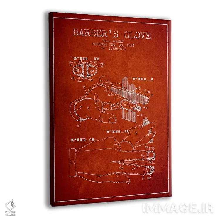 تابلو نقشه پتنت دستکش آرایشگری (قرمز) اثر پیکسل کهنه (استودیو/نام هنری) - نمای پرسپکتیو محصول