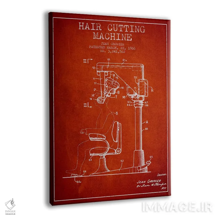 تابلو نقشه پتنت برش موی اتوماتیک (قرمز) اثر پیکسل کهنه (استودیو/نام هنری) - نمای پرسپکتیو محصول