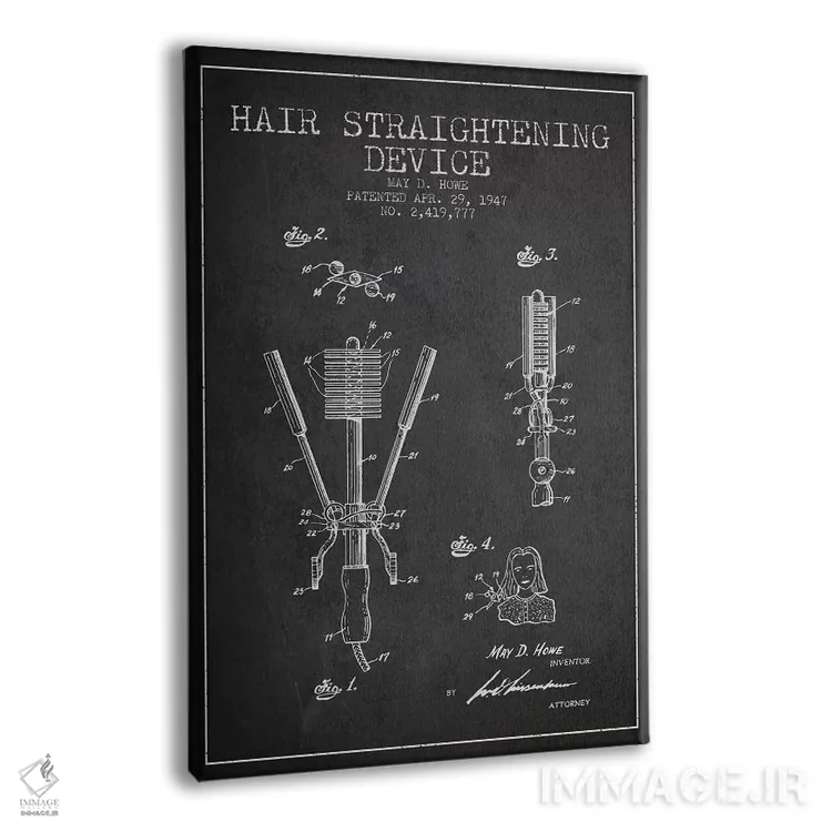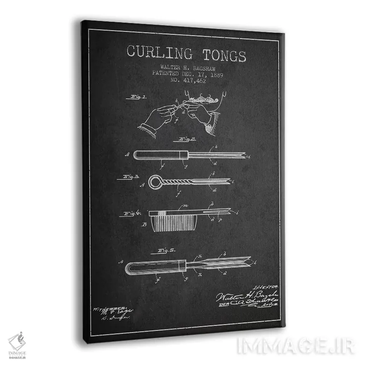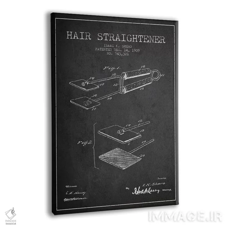 تابلو طرح پتنت فرکننده مو (زغال‌سنگی) اثر پیکسل کهنه (استودیو/نام هنری) - نمای پرسپکتیو محصول