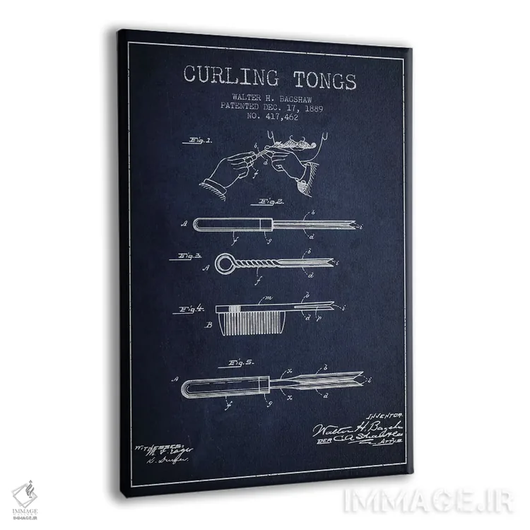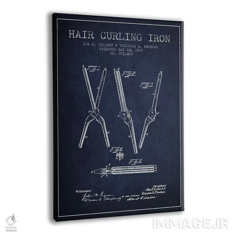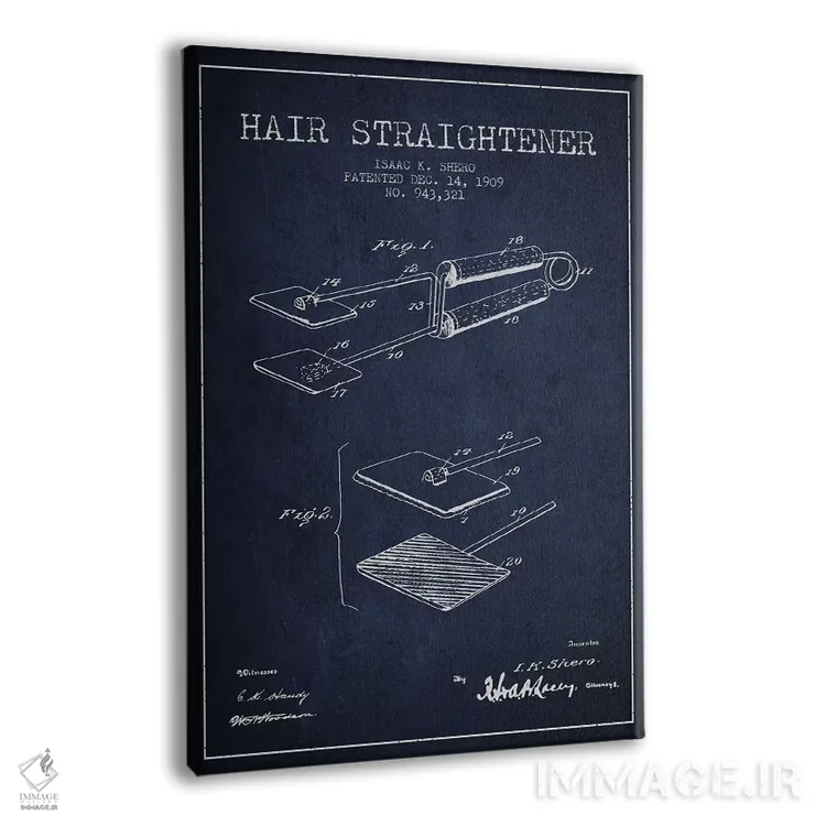 تابلو طرح پتنت فرکننده مو مدل ۲ (سورمه‌ای) اثر پیکسل کهنه (استودیو/نام هنری) - نمای پرسپکتیو محصول