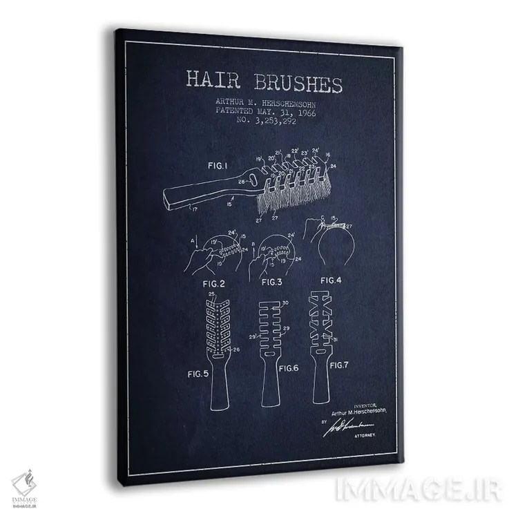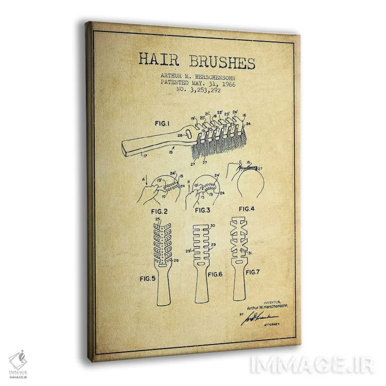 تابلو نقشهٔ ثبت اختراع برس مو (وینتیج/کلاسیک) اثر پیکسل کهنه (استودیو/نام هنری) - نمای پرسپکتیو محصول