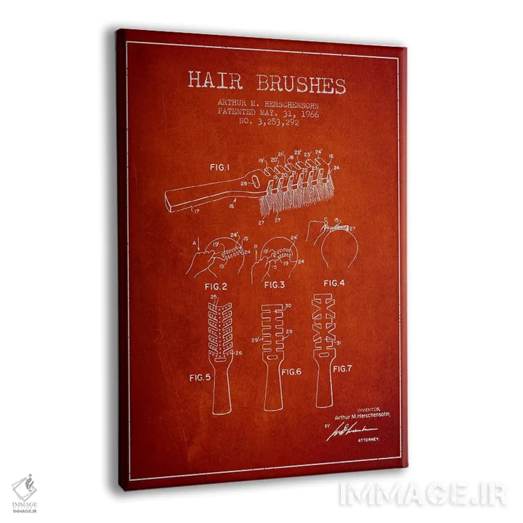تابلو نقشهٔ ثبت اختراع برس مو (قرمز) اثر پیکسل کهنه (استودیو/نام هنری) - نمای پرسپکتیو محصول