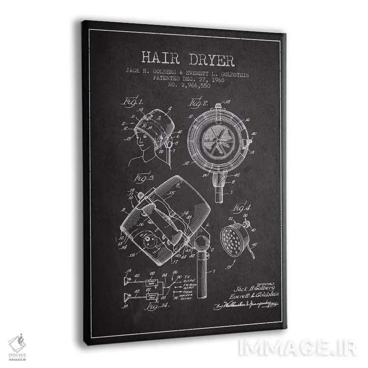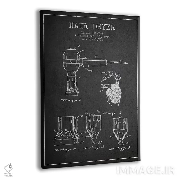 تابلو نقشهٔ ثبت اختراع سشوار (طرح زغالی) اثر پیکسل کهنه (استودیو/نام هنری) - نمای پرسپکتیو محصول