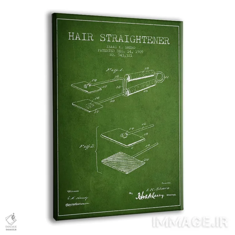 تابلو طرح پتنت فرکننده مو (سبز) اثر پیکسل کهنه (استودیو/نام هنری) - نمای پرسپکتیو محصول
