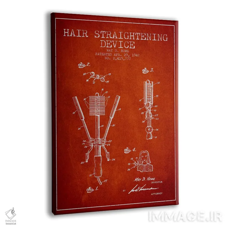 تابلو نقشهٔ ثبت اختراع فرکنندهٔ مو با روکش مخملی (قرمز) اثر پیکسل کهنه (استودیو/نام هنری)