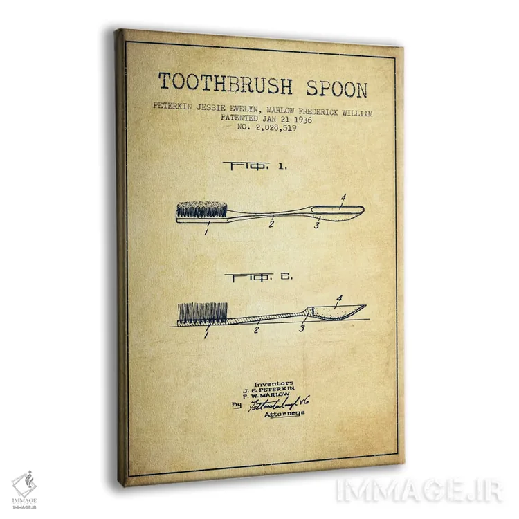 تابلو نقشهٔ ثبت اختراع قاشق مسواک‌دار (طرح کلاسیک) اثر پیکسل کهنه (استودیو/نام هنری)