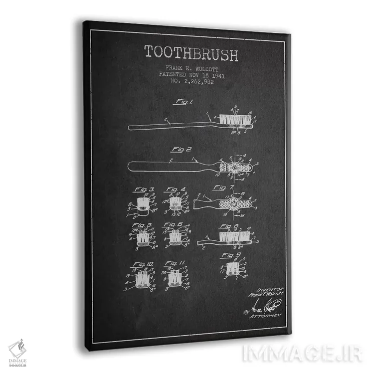 تابلو نقشهٔ ثبت اختراع مسواک (طرح کلاسیک) اثر پیکسل کهنه (استودیو/نام هنری)