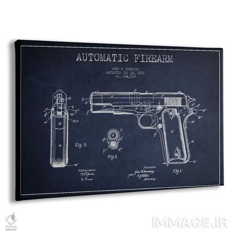 تابلو طرح پتنت تفنگ جان ام. براونینگ (مرکب) اثر پیکسل کهنه (استودیو/نام هنری) - نمای پرسپکتیو محصول