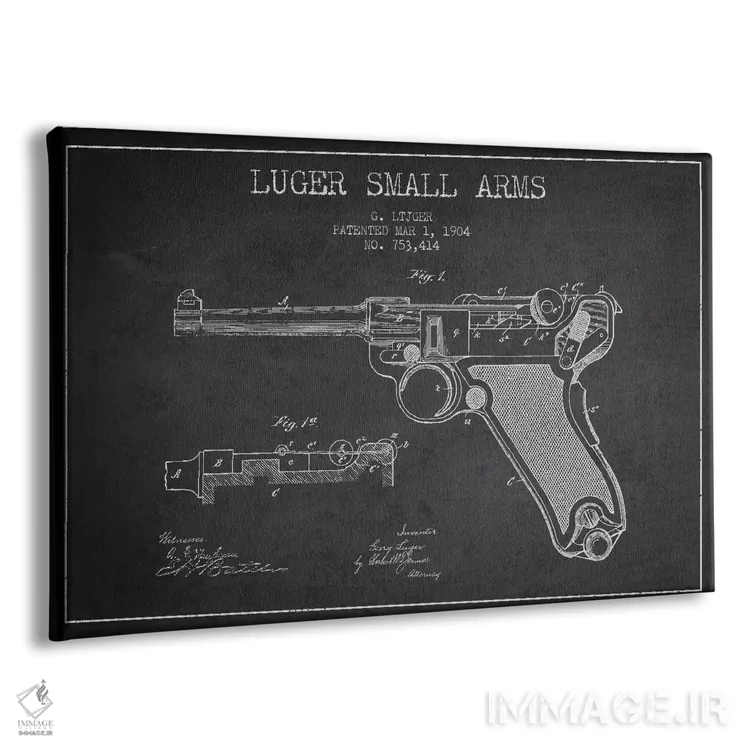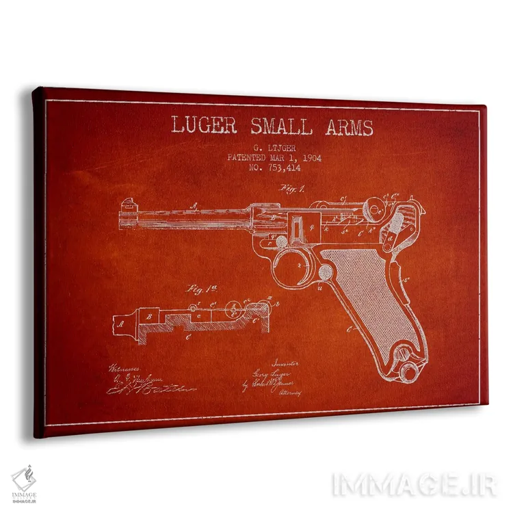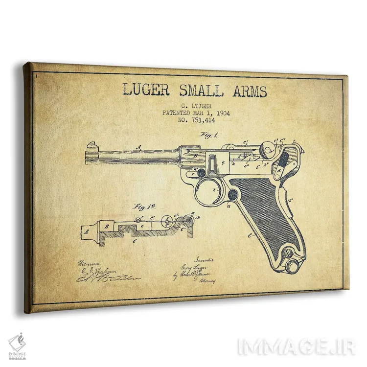 تابلو نقشهٔ ثبت اختراع سلاح لوگر قدیمی اثر پیکسل کهنه (استودیو/نام هنری)