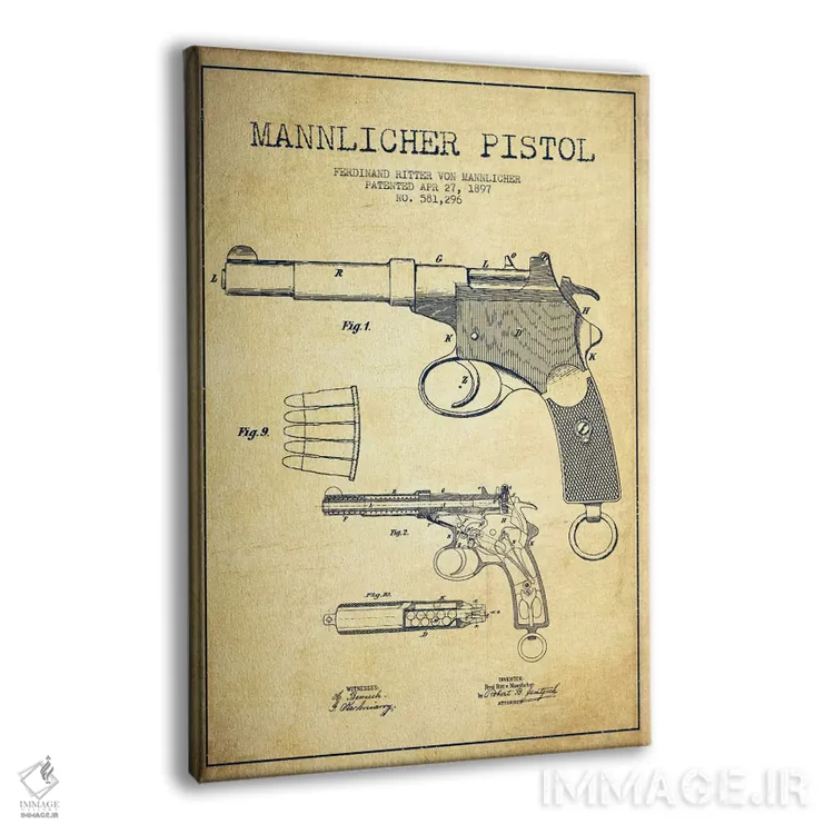 تابلو نقشهٔ ثبت اختراع تپانچه مانلیکر قدیمی اثر پیکسل کهنه (استودیو/نام هنری)