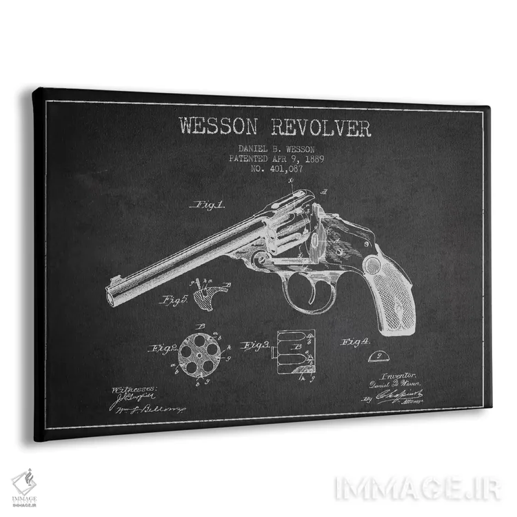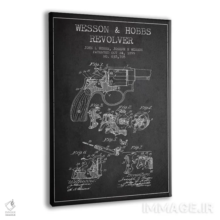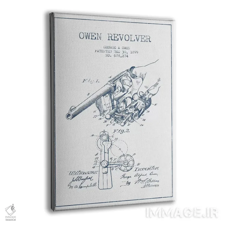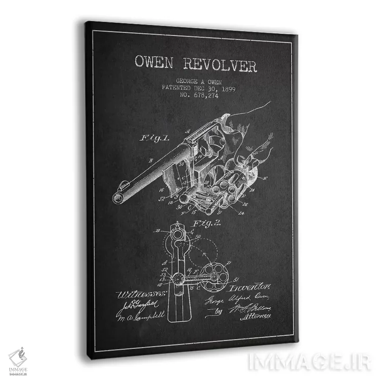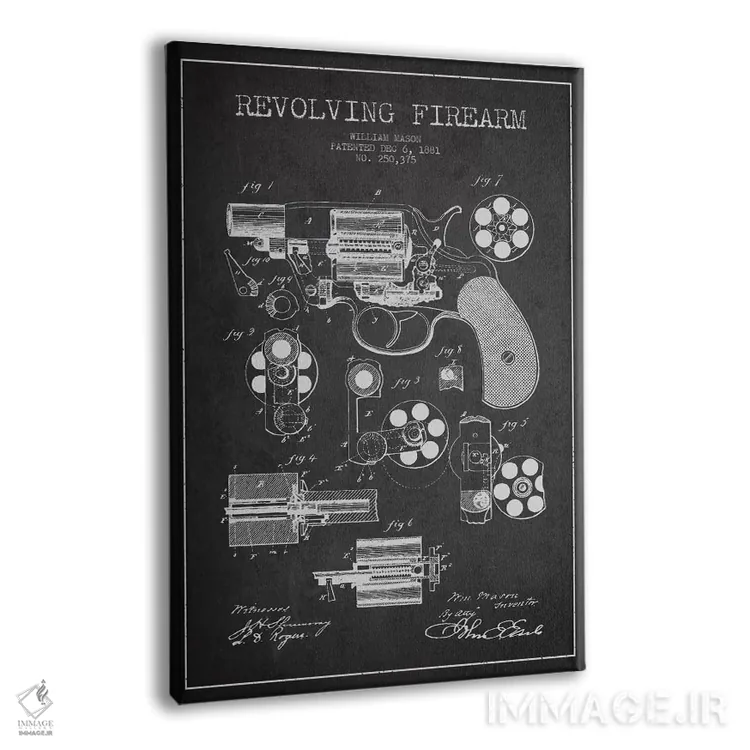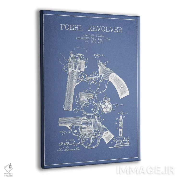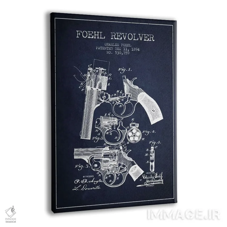 تابلو طرح اختراع هفت‌تیر چارلز فوئل (جوهر) اثر پیکسل کهنه (استودیو/نام هنری) - نمای پرسپکتیو محصول