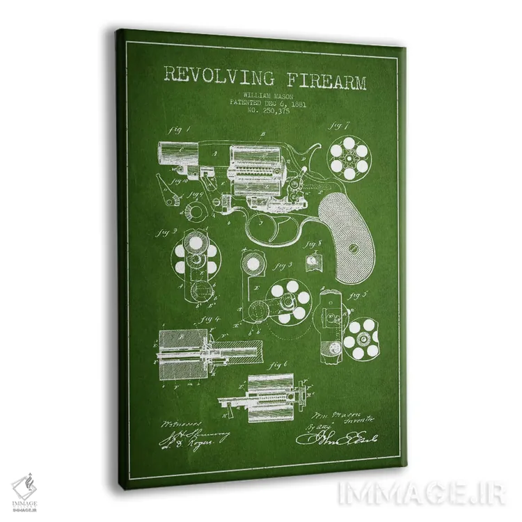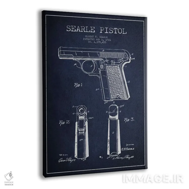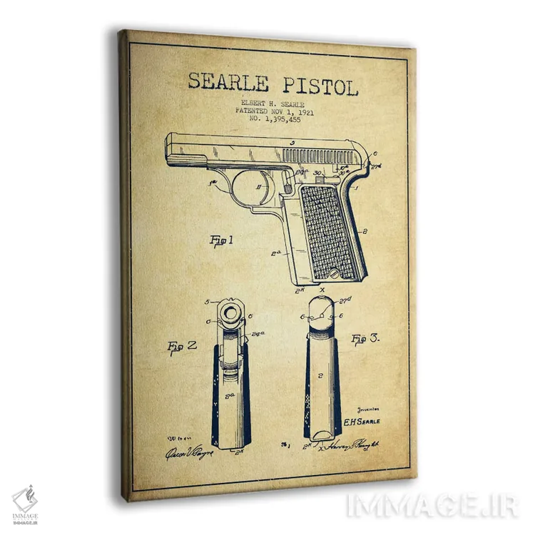 تابلو نقشهٔ ثبت اختراع تپانچه سیِرل قدیمی اثر پیکسل کهنه (استودیو/نام هنری)