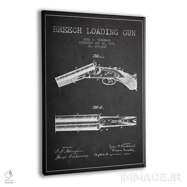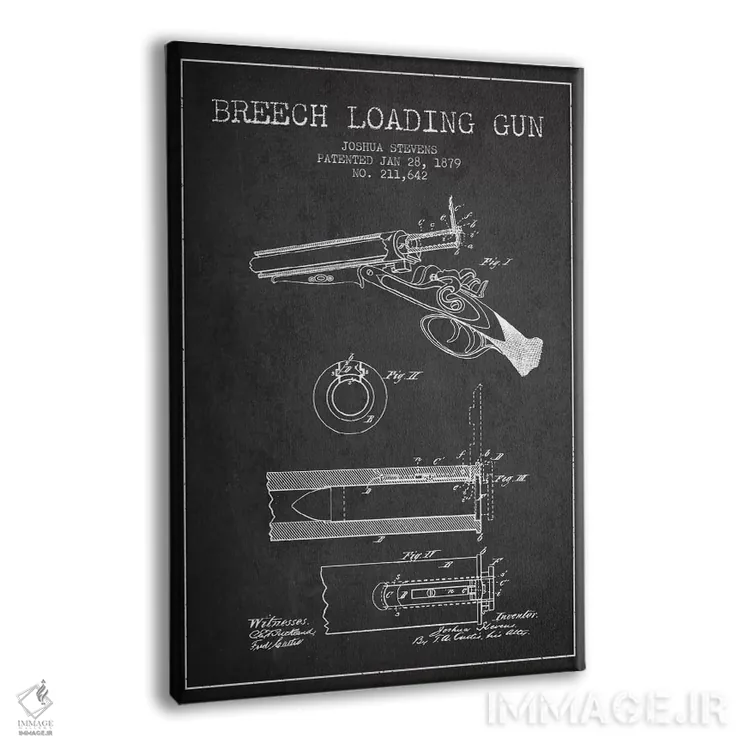 تابلو نقشهٔ ثبت اختراع اسلحه شاتگان استیونز ذغالی اثر پیکسل کهنه (استودیو/نام هنری) - نمای پرسپکتیو محصول
