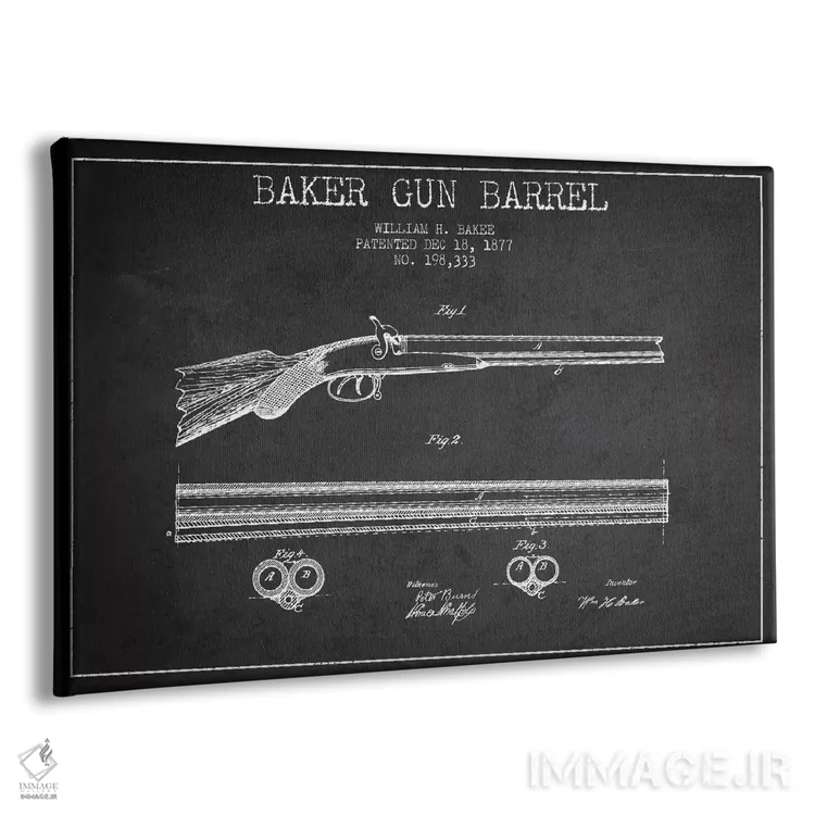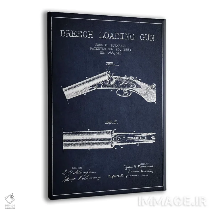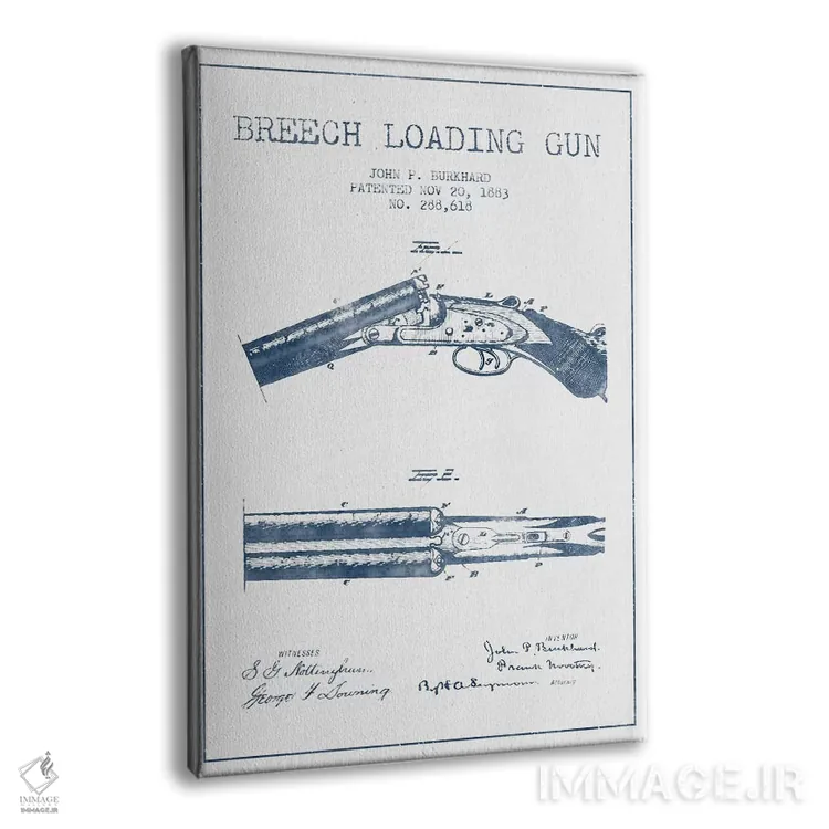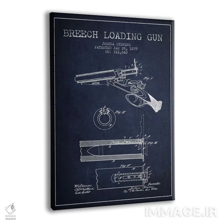 تابلو نقشهٔ ثبت اختراع اسلحه شاتگان استیونز سرمه‌ای اثر پیکسل کهنه (استودیو/نام هنری) - نمای پرسپکتیو محصول